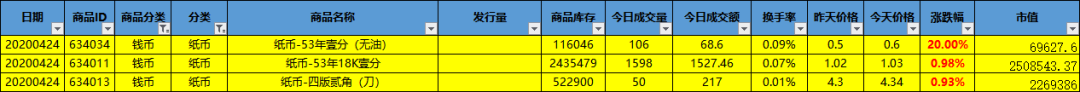 钱币总计上涨3个品种,持平82个品种,下跌4个品种。