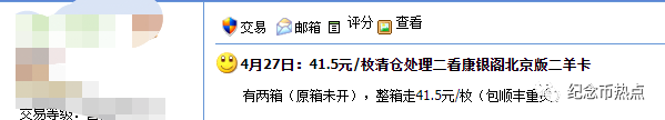 二羊的行情也不容乐观,目前大宗市场上二羊卷币的叫价在42元/枚,康银阁的二羊卡成交价在41.5元。目前的价格也接近历史底价了。