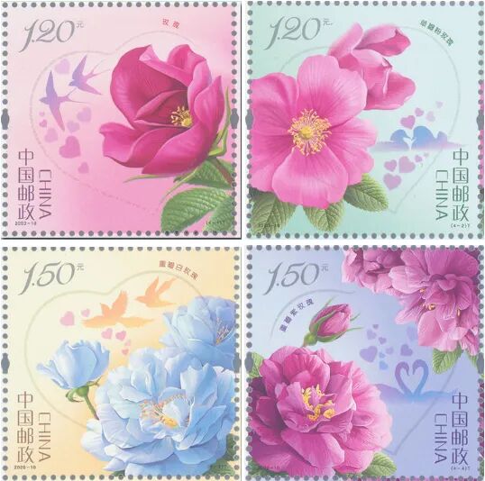 中国邮政定于2020年5月20日发行《玫瑰》特种邮票1套4枚,详情如下: