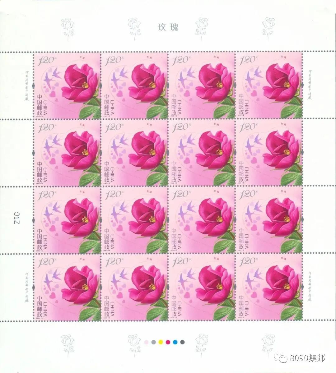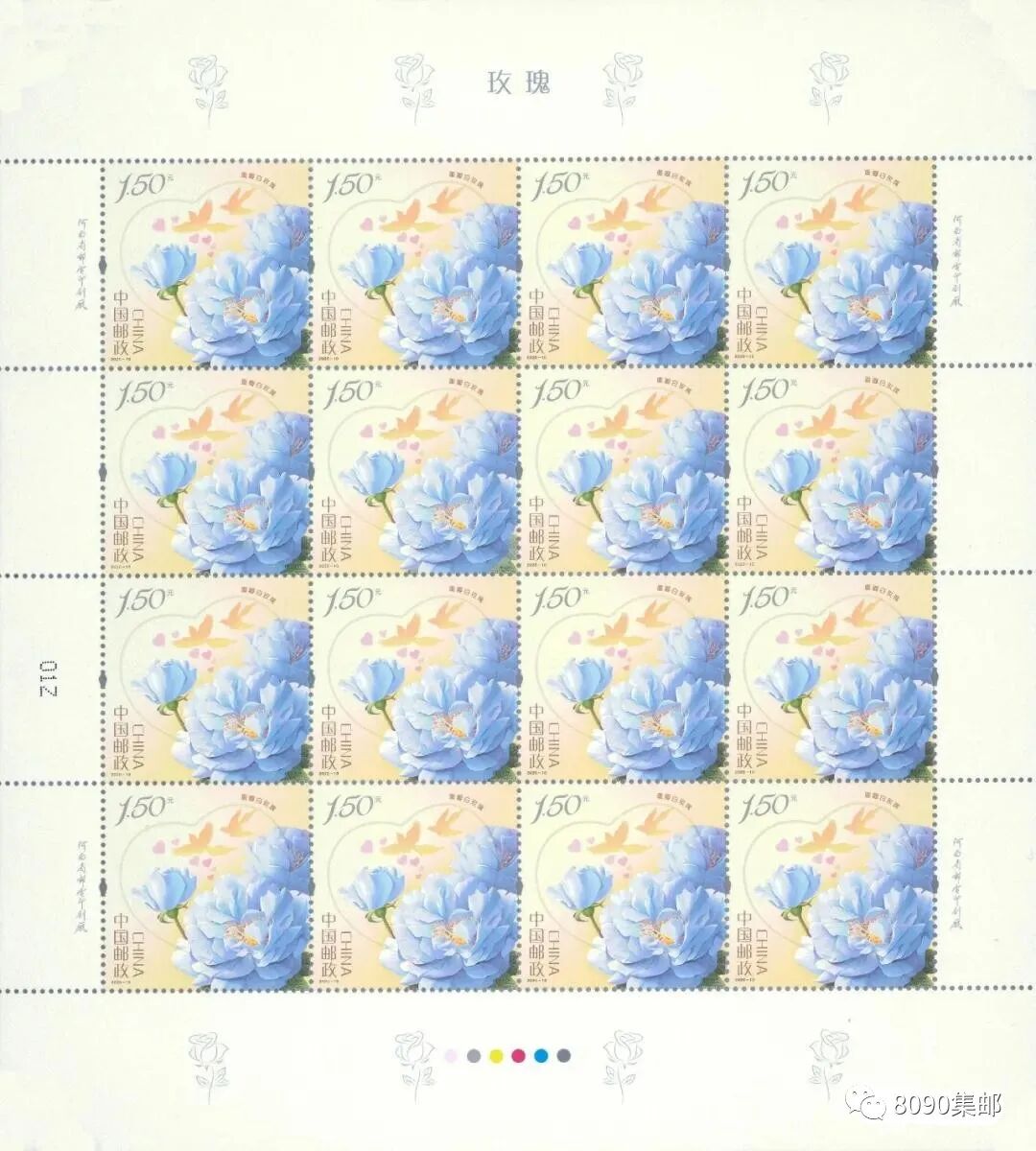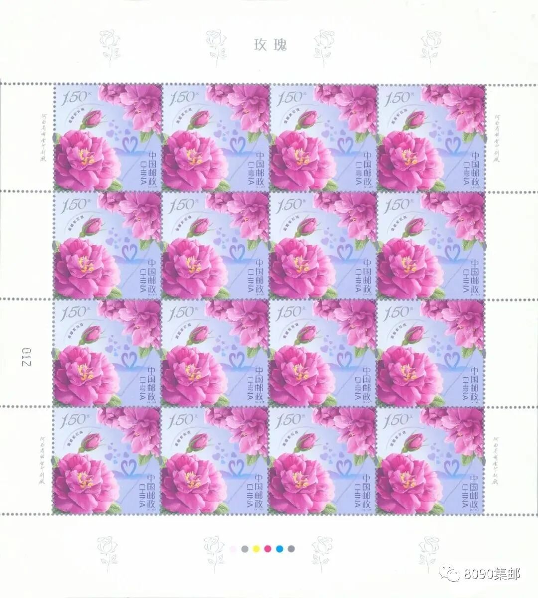 中国邮政定于2020年5月20日发行《玫瑰》特种邮票1套4枚。