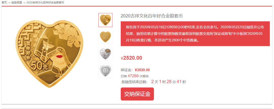 大家心心念念的心形纪念币正在抽签中,截止时间为5月19日12点,还没有参加抽签的小伙伴快去抽签吧!