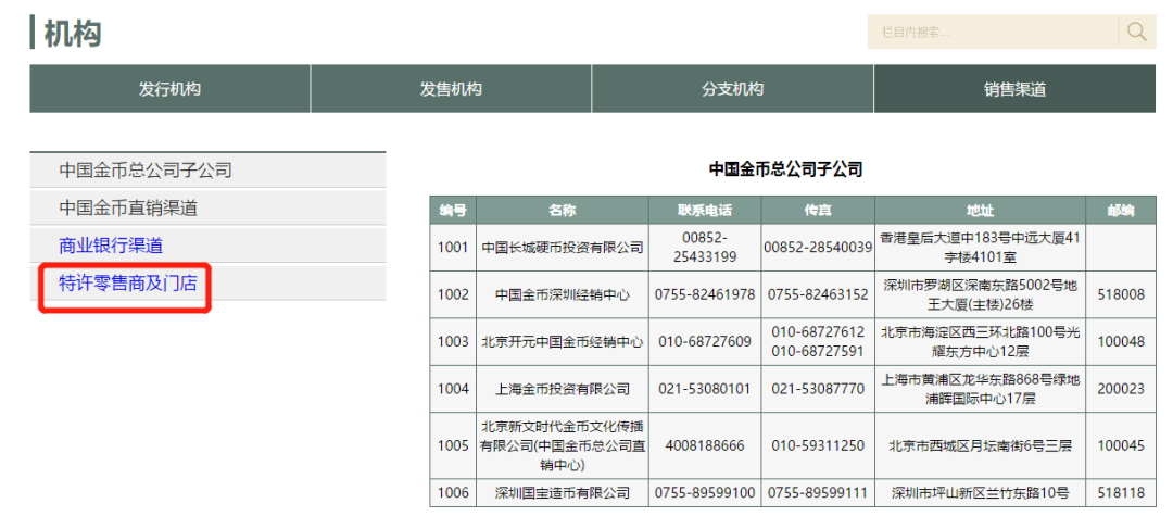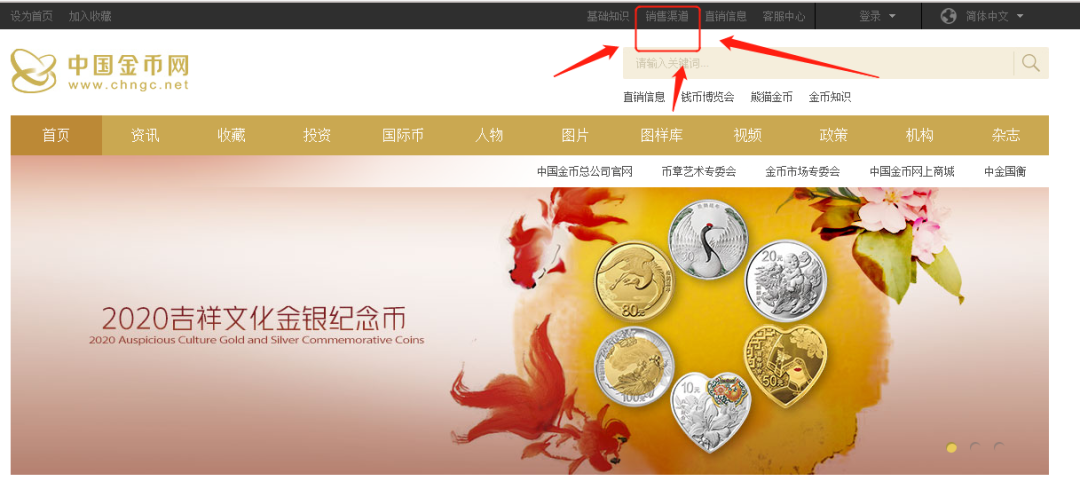 搜索“中国金币网”,在页面上方找到“销售渠道”查看即可。