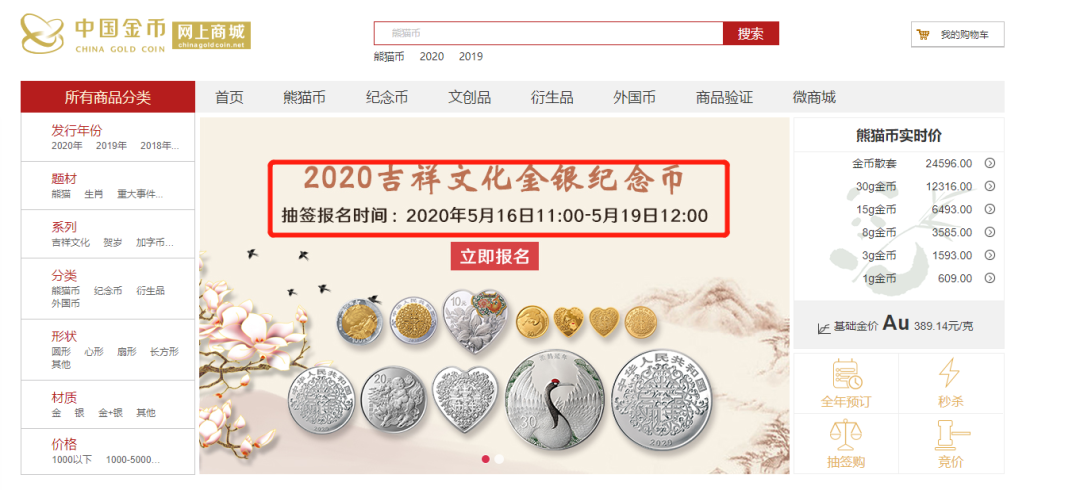 打开某浏览器搜索“中国金币网上商城”,小编已把网址备好“http://www.chinagoldcoin.net/”,在首页你会看到下图这个封面,点击进去即可。