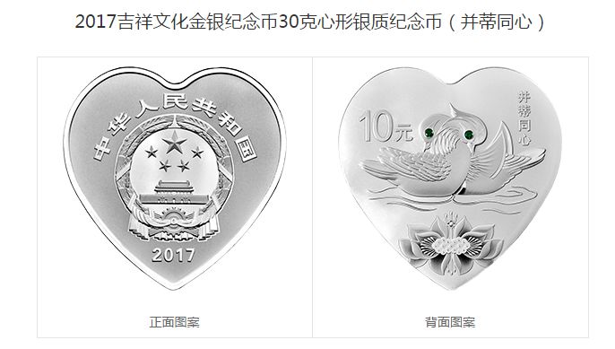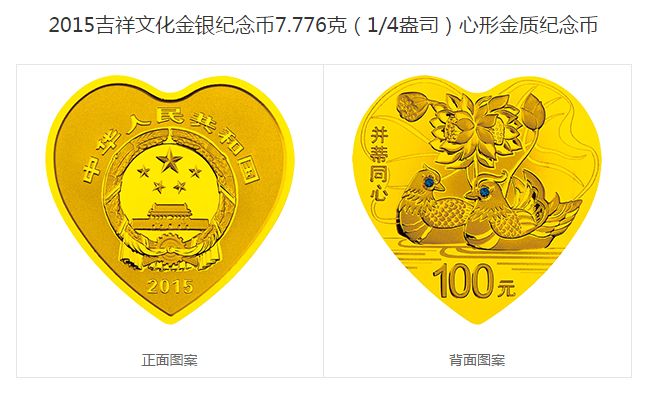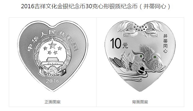 吉祥文化中的心形纪念币,央行从2015年就开始发行了,今年是第6个年头。