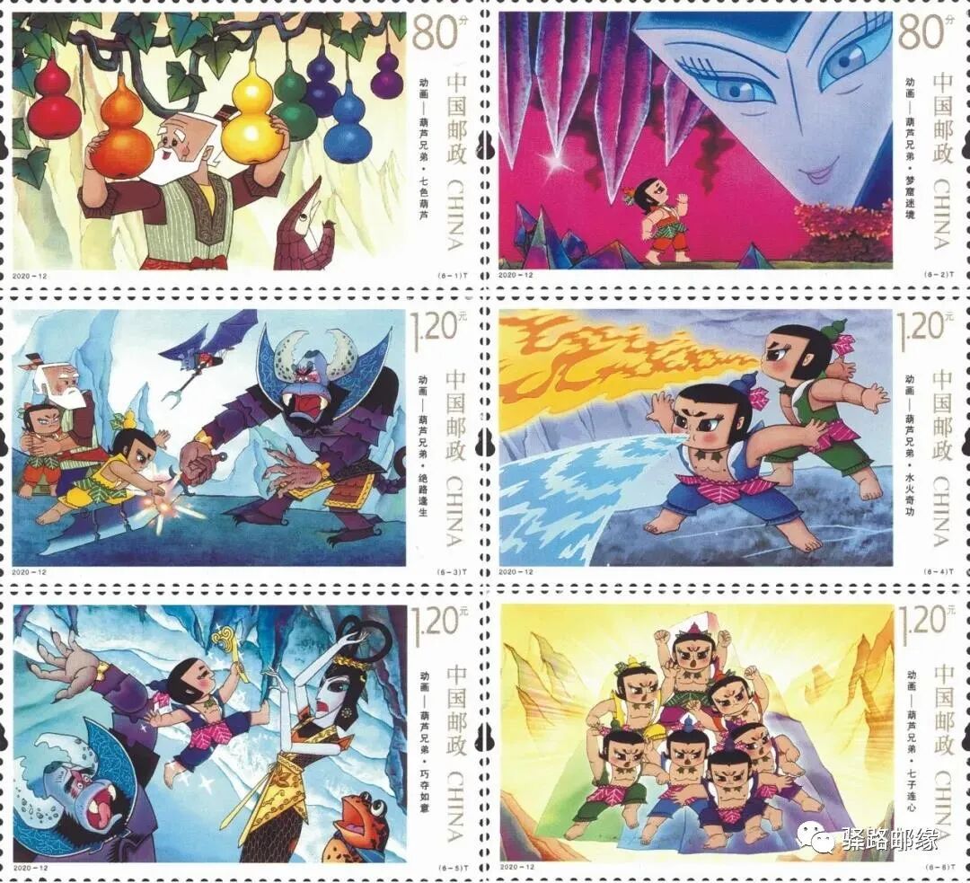 中国邮政定于2020年6月1日发行《动画——葫芦兄弟》特种邮票1套6枚。详情如下: