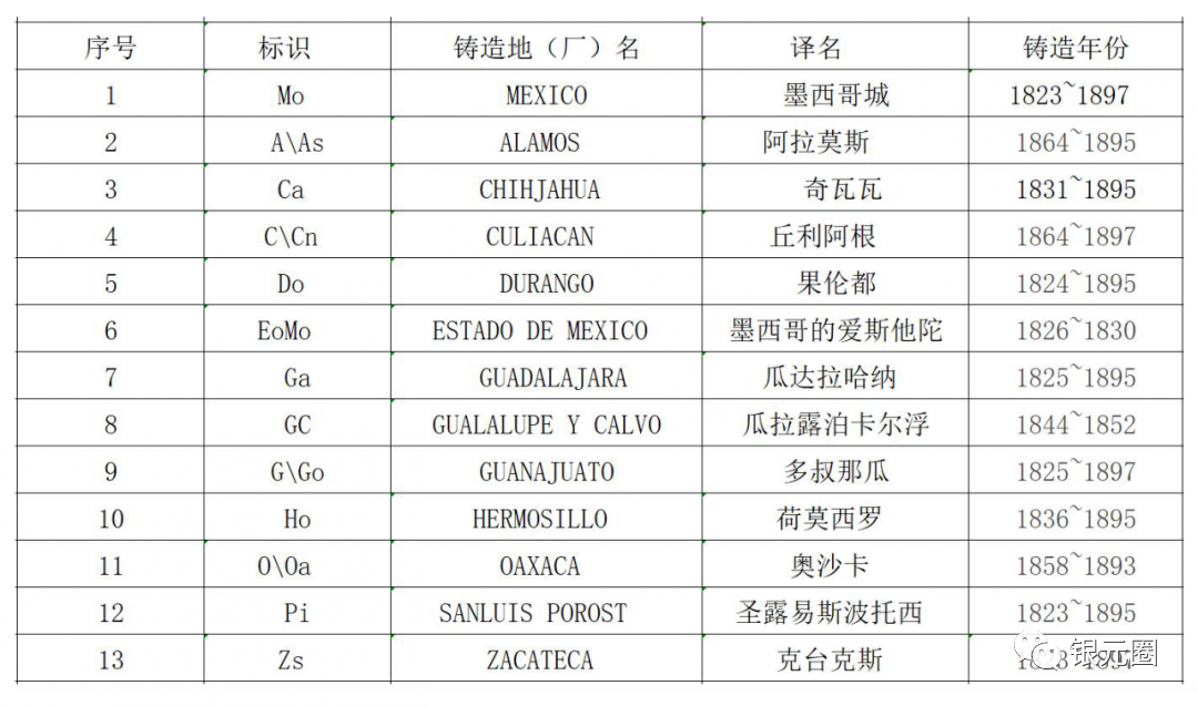 在“8R”(货币单位)后就分别记有厂家标识,如:Mo、Zs、Gn、Co、Ho、Pi、Do等,每一个符号都代表了一个制造厂。