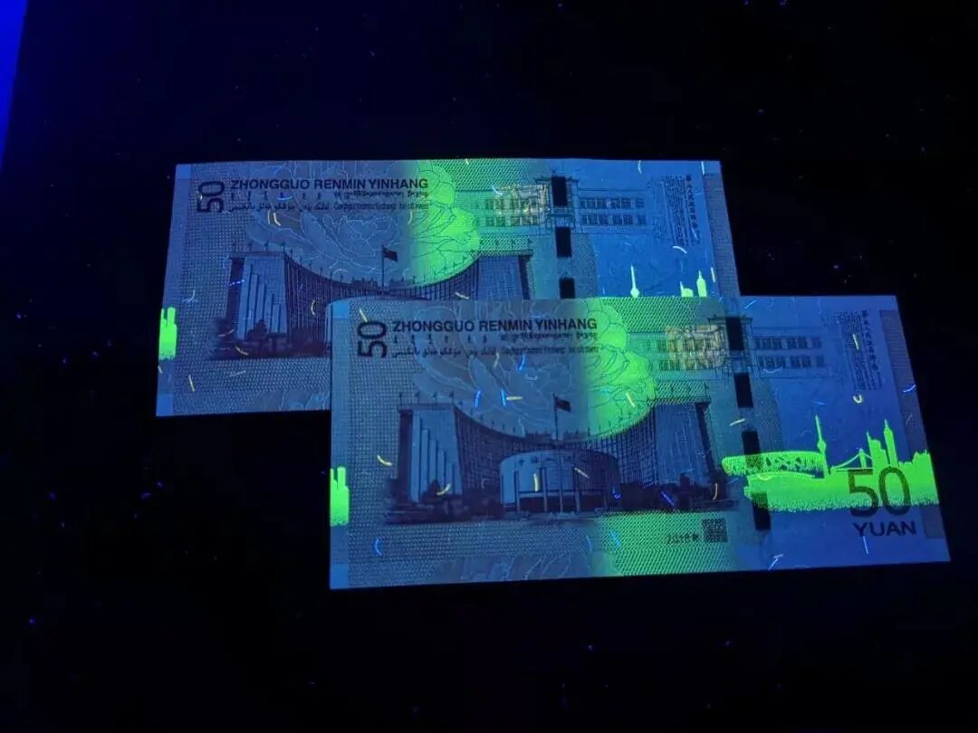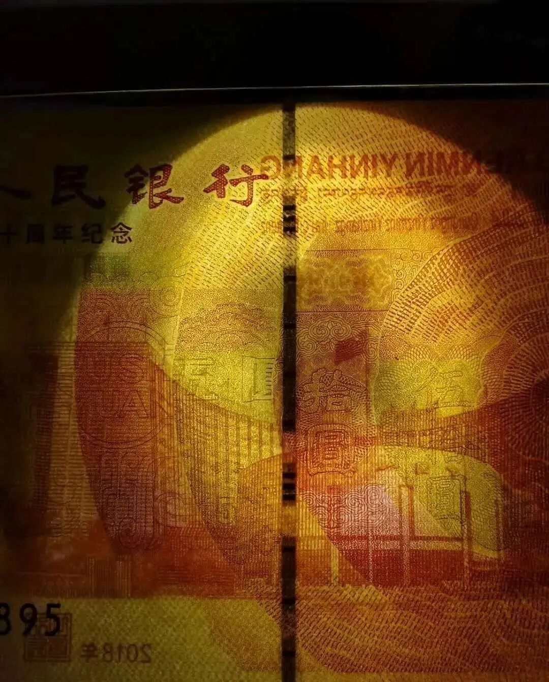 70钞上有2根防伪线,其中一根的“50”字样被漏印,且防伪线看起来像竹节一样断断续续,故名“竹节钞”: