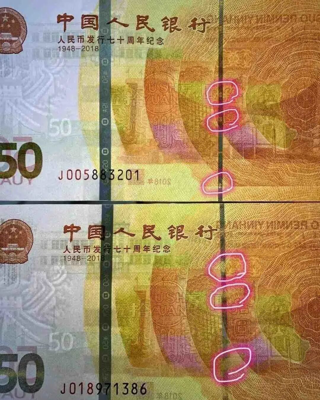 手里有70钞的朋友,不妨回去看看,有一张就赚大了。注意了,直接透光看就好,不用荧光灯。
