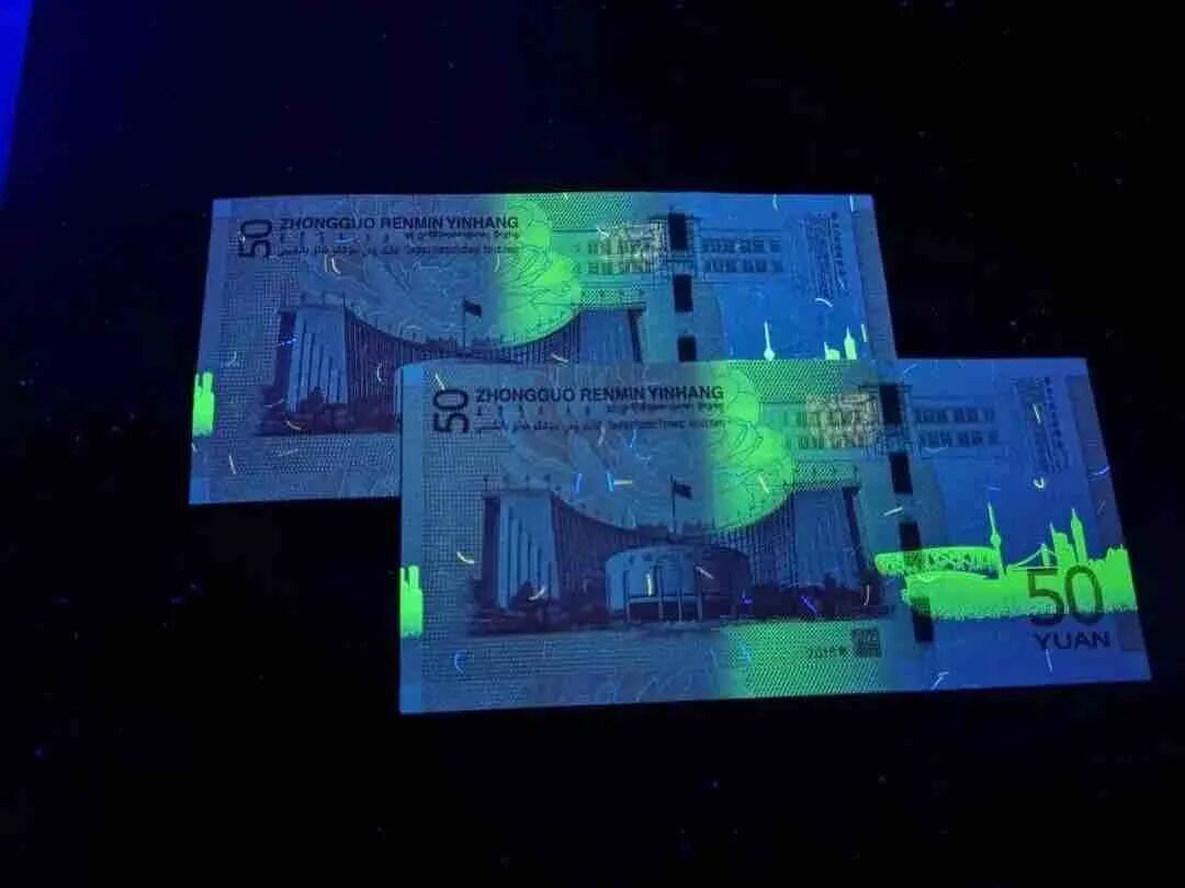 70钞上有2根防伪线,其中一根的“50”字样被漏印,且防伪线看起来像竹节一样断断续续,故名“竹节钞”: