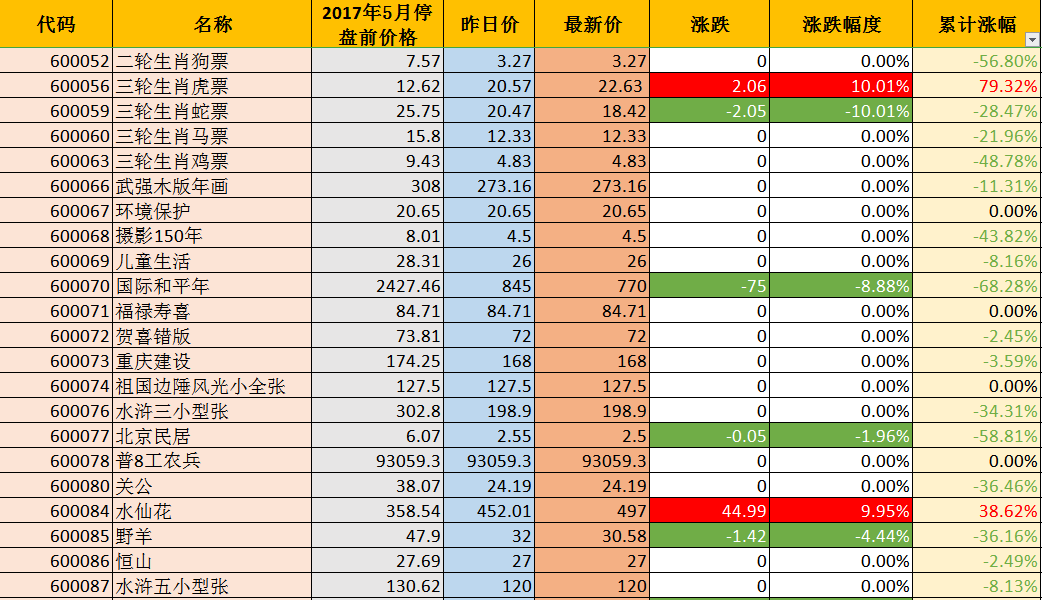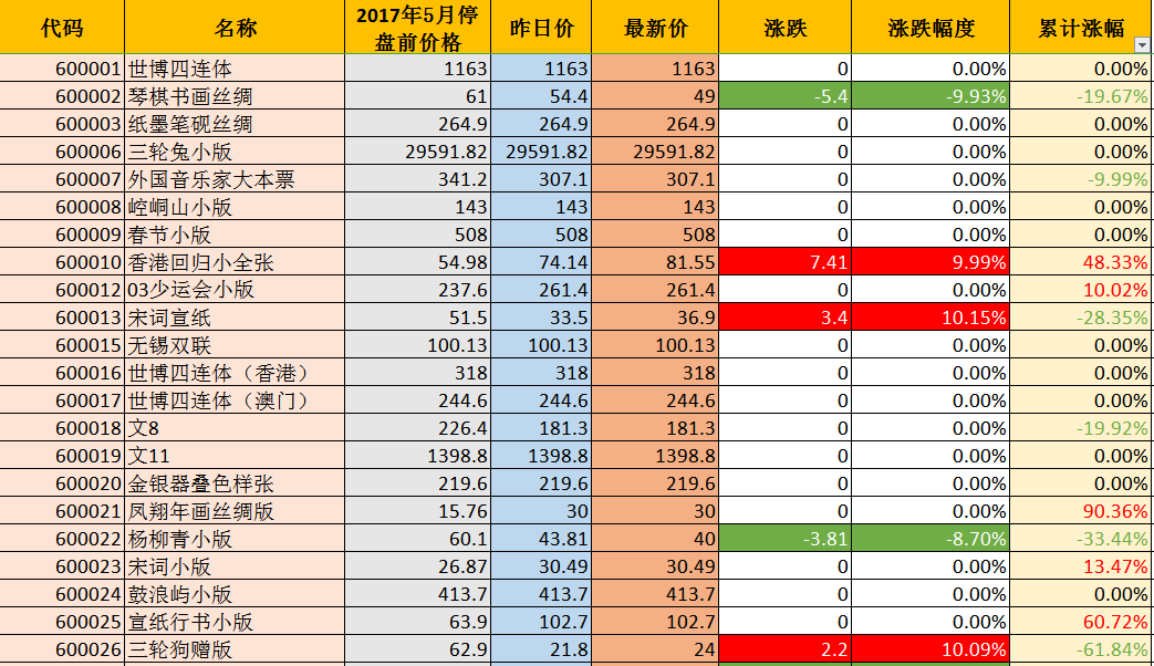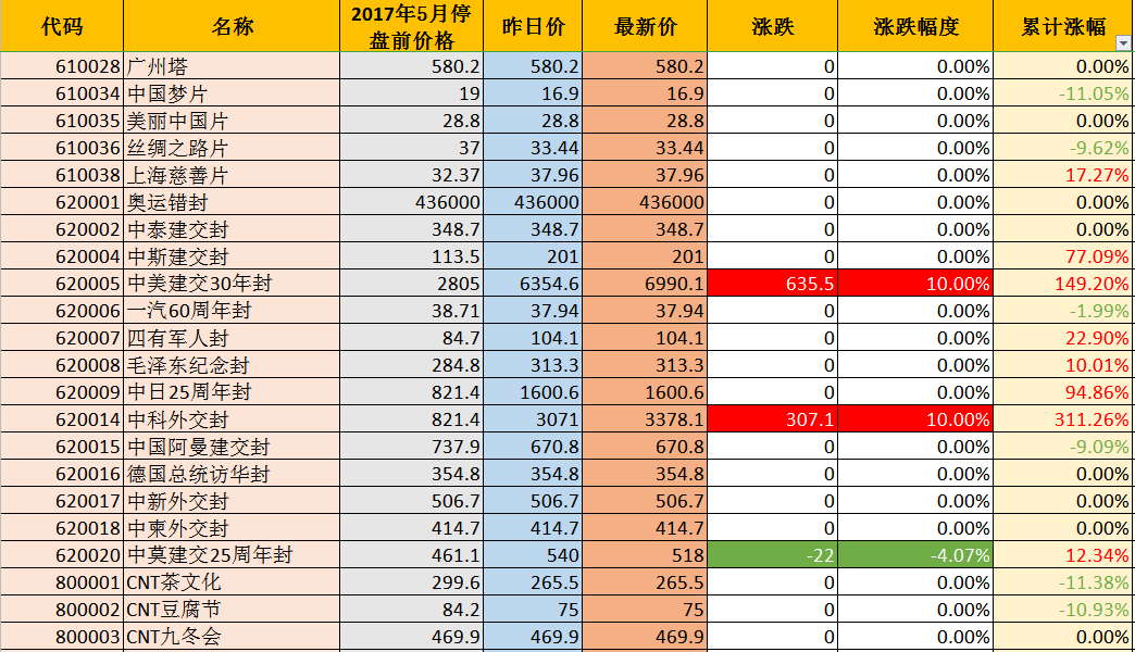 开盘以来,涨幅超过100%的品种已经达到六个,中科外交封(311.26%),海军战士(185.90%),南极条约(173.59%),中美建交30年封(149.20%),舞动北京(140.46%),一轮生肖牛票(110.22%)。