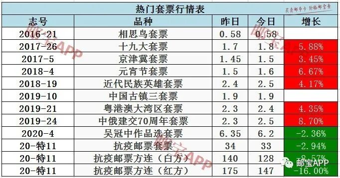 十九大套票昨日行情为1.7元,今日最新价格为1.8元,上涨5.88%。