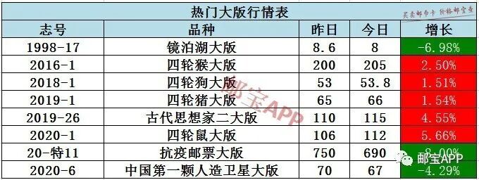 抗疫邮票大版昨日行情为750元,今日最新价格为690元,下跌8.00%。
