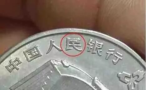 ▲实心民版建行币,乍看和普通的建行币区别不大,但是仔细看就会币面上的“民”字不同,原本应该空心的“口”变成了实心,多出了一块肉。