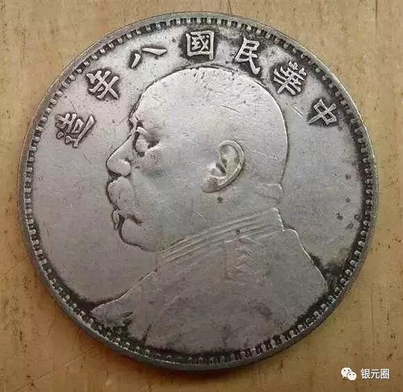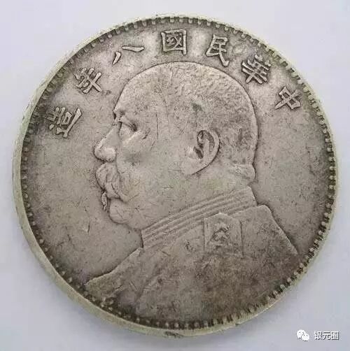 第二种高仿袁大头八年 八年的假货最近一年内正在飞速的递增,很多老包浆做的很好,齿边做的已经过关