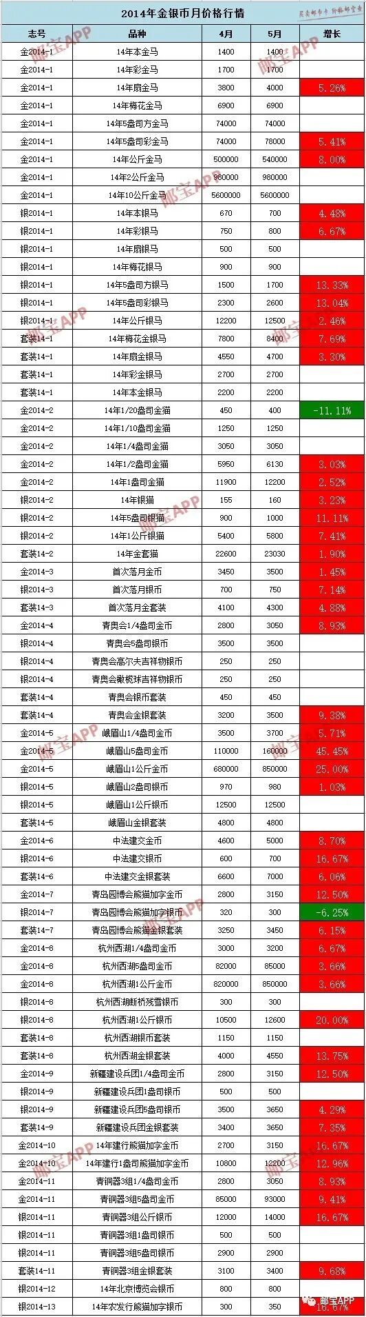 青奥会金银套装上月行情为3200元,本月价格为3500元,上涨9.38%。