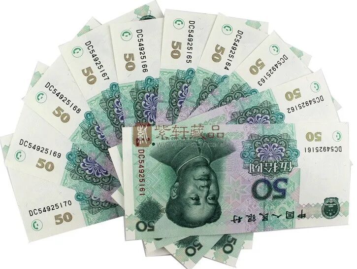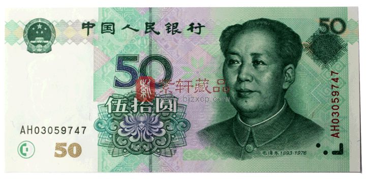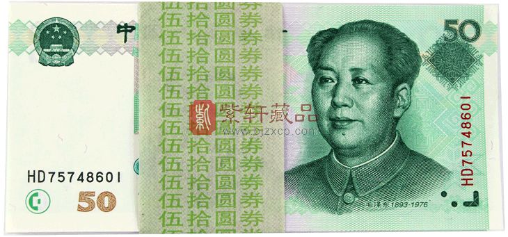 9950首发日期2001年9月1日,2004年7月30日改版发行0550,只有2至3年时间。票面主色调为绿色,票幅长150mm、宽70mm,正面主景为毛泽东头像,左侧为花卉图案,票面左上方为中华人民共和国"国徽"图案,右下方为盲文面额标记。背面主景为"布达拉宫"图案,票面右上方为"中国人民银行"汉语拼音字母和蒙、藏、维、壮四种民族文字的"中国人民银行"字样和面额,0550的背面比9950多了一个“YUAN”。