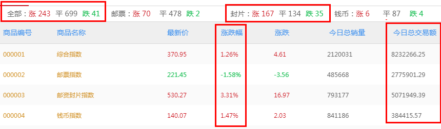 京东文娱寄卖商城商品行情(目前主要分析邮资封片、邮票和钱币板块),以下图表皆可点击放大查看。