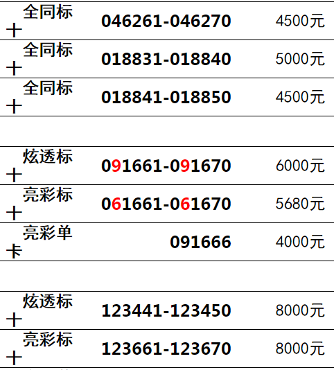 而全同标十的对卡,价格也从4000元到11000元不等,全同标百更是突破5万元大关,太疯狂了!