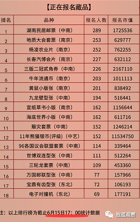 截止到6月15日17点,相关藏品转板、报名情况如下: