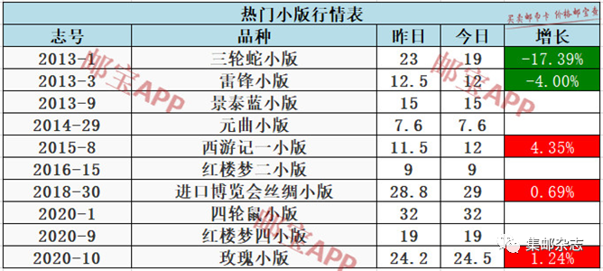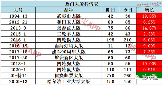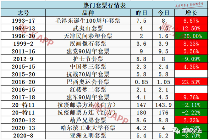 市场:本周邮票活跃品种网上交易价格 日期:2020-06-16 来源:集邮杂志 今天,通过“邮宝”APP为大家查询了本周邮票活跃品种网上交易价格供大家参考。 大版票 小版票 套票 小型(全)张 查询更多邮票、钱币、纪念钞、金银纪念币以及磁卡的价格,请登录“邮宝”APP。