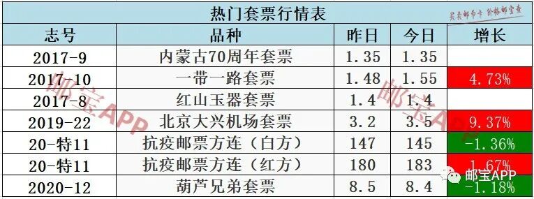 抗疫邮票方连(红方)昨日行情为180元,今日价格为183元,上涨1.67%。