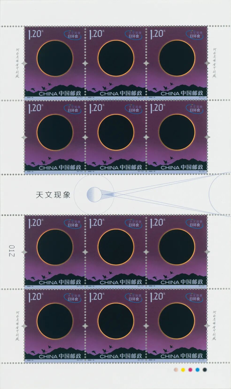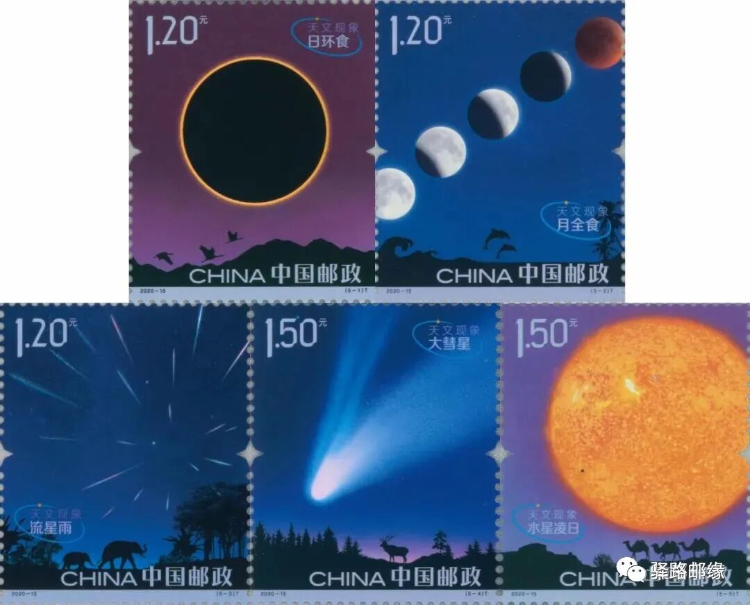 中国邮政定于2020年6月21日发行《天文现象》特种邮票1套5枚。详情如下: