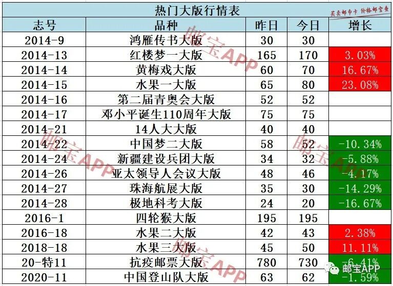 抗疫邮票大版昨日行情为780元,今日价格为730元,下跌6.41%。