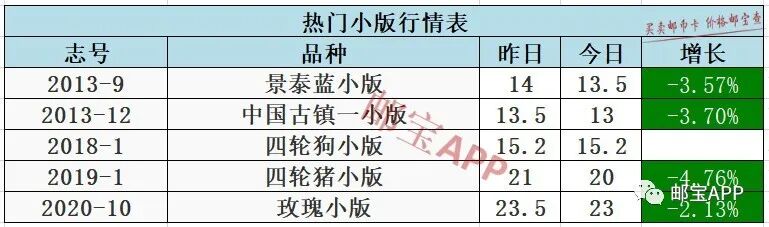 八邮小型张昨日行情为11元,今日价格为10元,下跌9.09%。