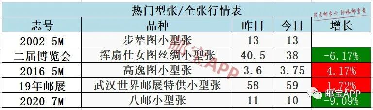 挥扇仕女图丝绸小型张昨日行情为40.5元,今日价格为38元,下跌6.17%。