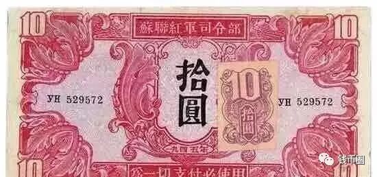 为解决苏联红军出兵东北对日作战的经费,按国民党政府和苏联政府签订的《中苏友好共同对日作战协定》规定,苏联红军司令部于1945年10月22日至1946年4月底发行了苏联红军司令部钞票,当时人们简称为苏军票,有1元、5元、10元、100元四种面额,发行总额97.25亿元。该钞票系在苏联国内印制,图案具俄罗斯传统风格,均带有水印,流通使用于我国东北地区。