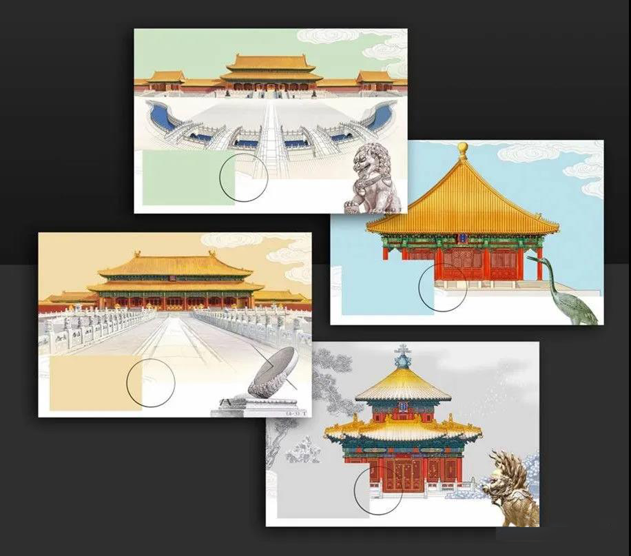 据悉,此次邮票设计者是著名雕刻师阎炳武先生,主图为一桥、一殿、一宫、一亭。我个人随便猜下,是金水桥、太和殿、乾清宫、万春亭。