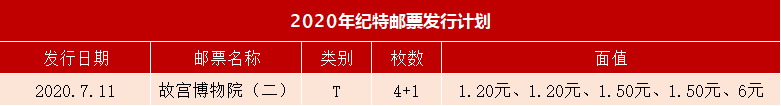 根据中国邮政的发行计划,故宫博物院(二)邮票将于7月11日发行,邮票一套4枚,小型张1枚。