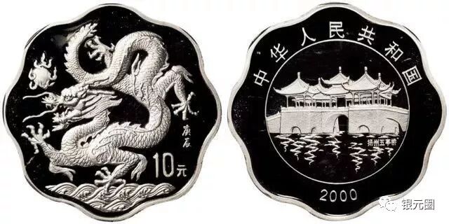 2000年庚辰龙年生肖纪念银币,精制,面值10元,重量:2/3盎司,成色90%,发行量6800枚。