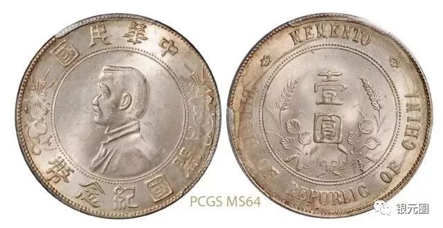 ▲孙中山像开国纪念壹圆银币 PCGS MS64