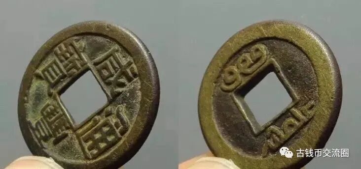 九叠篆“皇宋通宝”钱,九叠篆原是一种流行于宋代“国朝官印”字体,主要用于印章镌刻,其笔画折叠堆曲,均匀对称。每一个字的折叠多少,则视笔画的繁简确定,有五叠、六叠、七叠、八叠、九叠、十叠之分。之所以称为“九叠”,则是因“九是数之终,言其多也”,将九叠篆用于钱文,“皇宋通宝”钱为第一例也是最后一例。