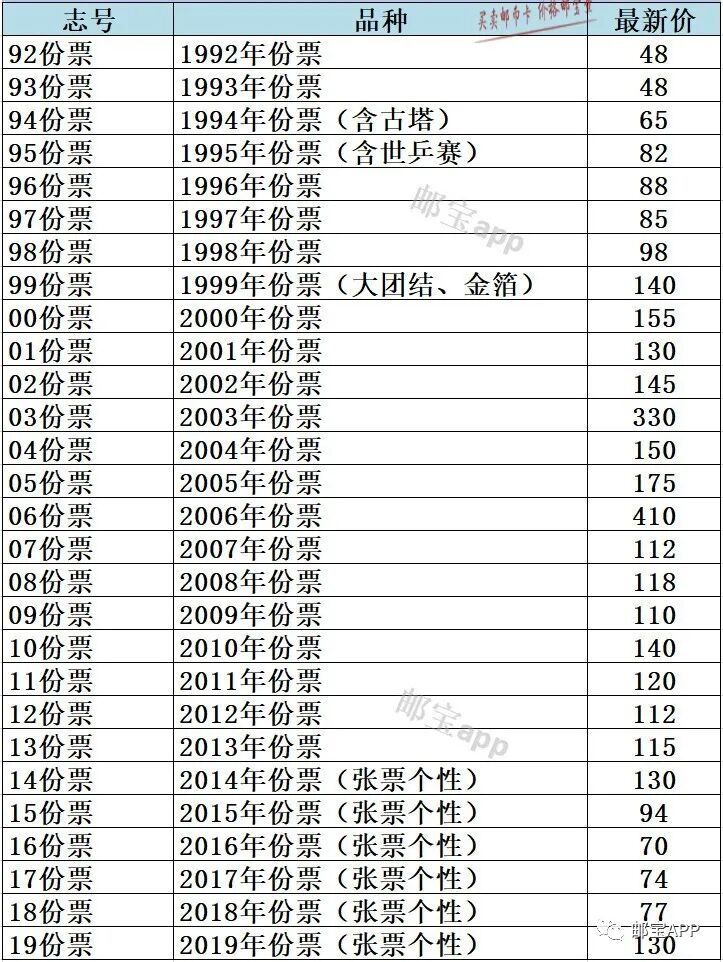 相比成交较为活跃的份票基本锁定在近几年,成交虽然相对频繁,但是价格下跌居多,如19年份票,年初价格还在150至160元之间波动,到目前最新价格跌至130元。