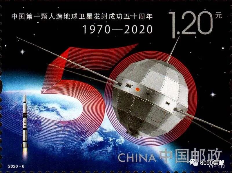 中国邮政于4月23日发行《中国第一颗人造地球卫星发射成功五十周年》纪念邮票一套一枚,邮票由于雪设计,北京邮票厂采用胶版印制。