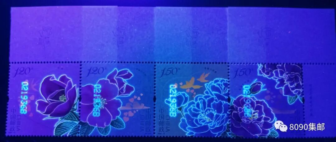 在第二季度的三个月的时间内,中国邮政发行了十套邮票,其中包含两款小型张,那么这些邮票在荧光灯下,会有产生哪些“反应”呢?