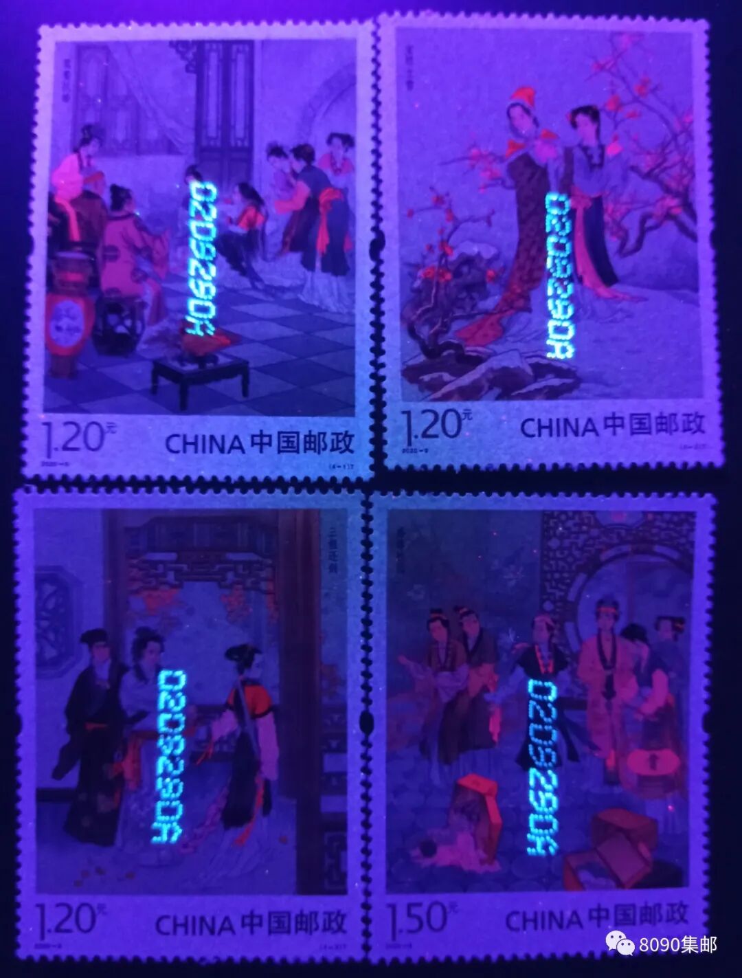 这套邮票印刷网点细腻程度,优于2016年北京邮票厂承印的《红楼梦》(二),在荧光灯下,并没有过多亮点,而是北京厂常见的红色荧光。