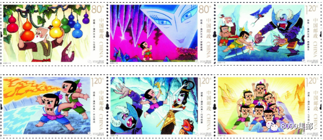 中国邮政于6月1日发行《动画——葫芦兄弟》邮票一套六枚,邮票由宋鉴设计,北京邮票厂采用影写版印制。
