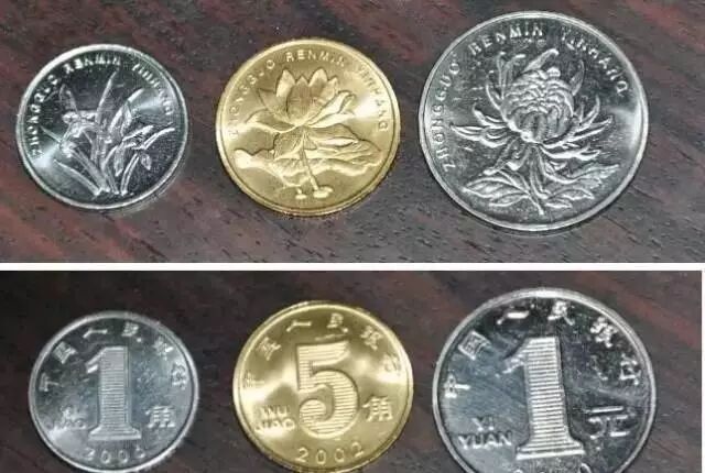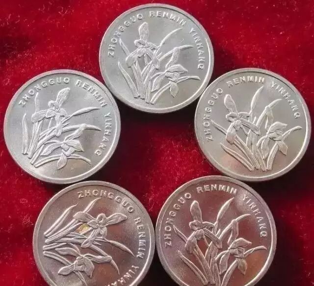 菊花一元,荷花五角,兰花一角是跟第五版人民币同时发行的一版硬币。