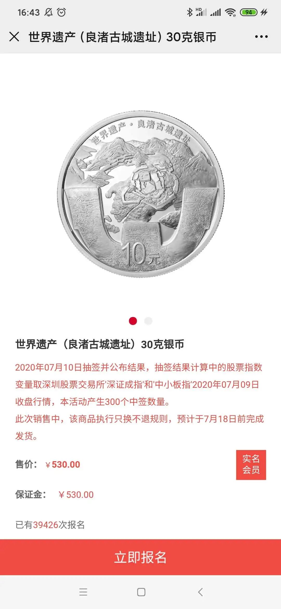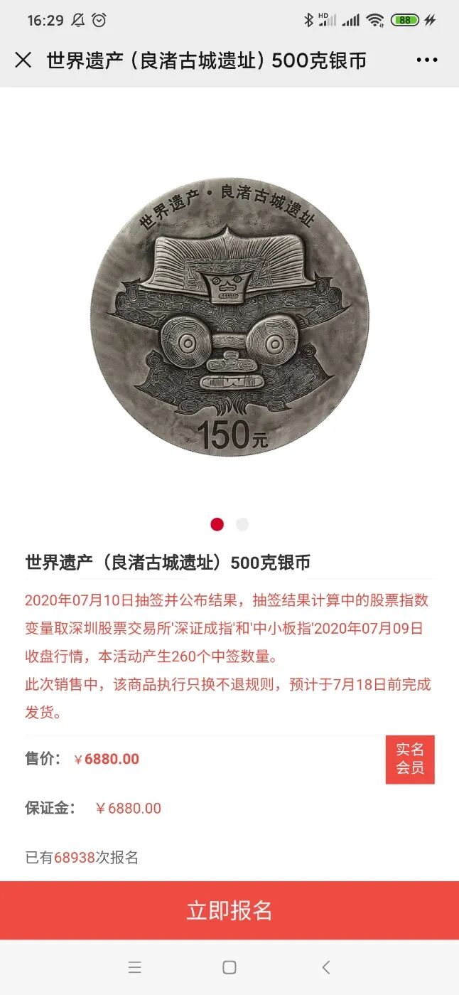 这两天大家应该比较关注的消息就是世界遗产(良渚古城遗址)金银纪念币的发行消息了吧?特别是其中的500克银币简直火得不要不要的。废话不说,直接看图,截止小编写稿的时间7日下午16:30,已经有将近7万人报名抽签了。