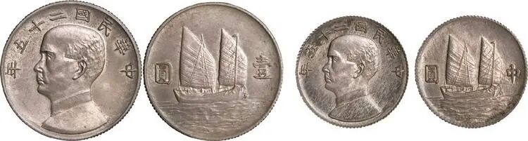 1936年民国二十五年孙中山像船洋壹圆、中圆银币样币各一枚RMB 1,344,000