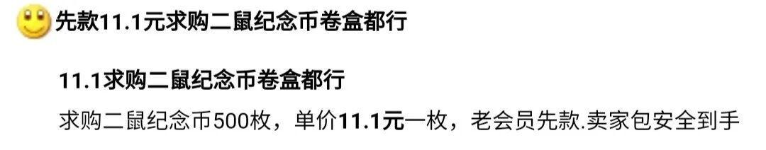 目前,二鼠的批发市场求购价就已经达到了11.1元一枚,成交非常活跃。