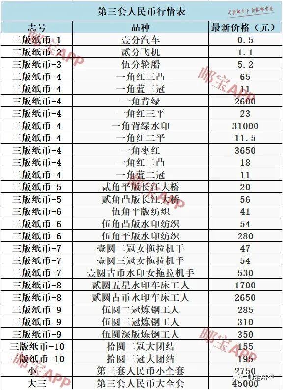 以下附带第三套人民币最新的行情价