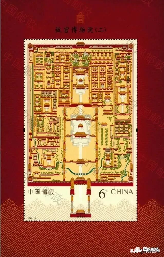 这枚型张实际上是一枚“故宫导游图”,如果放在一组,或许更有作用,因为所绘是故宫全景图,细看很清晰,颇有立体感,对于以后的各组故宫邮票,都有个引导介绍的作用,可是放在了二组,既破坏了系列统一的特点,又晚了“导游”的作用,还让人有突兀的感觉。