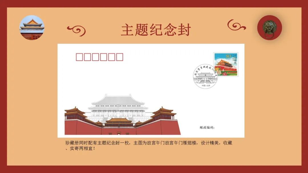 珍藏册同时配有主题纪念封一枚,主图为故宫午门雁翅楼,设计精美,收藏、实寄两相宜!