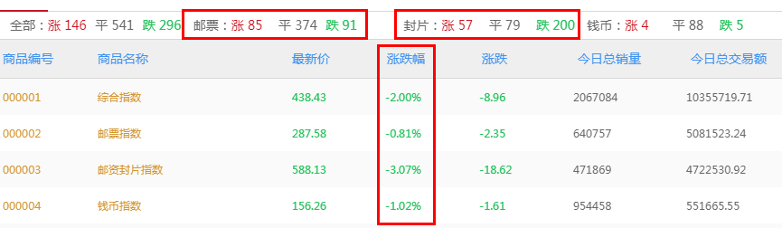 京东文娱寄卖商城商品行情(目前主要分析邮资封片、邮票和钱币板块),以下图表皆可点击放大查看。