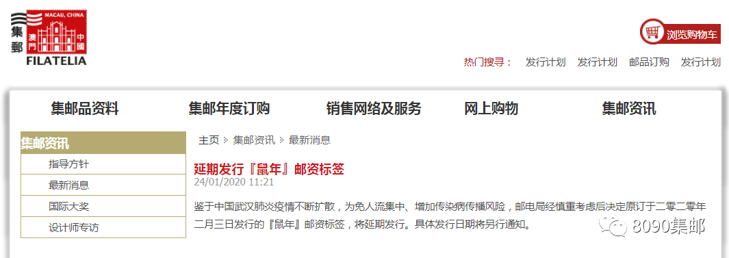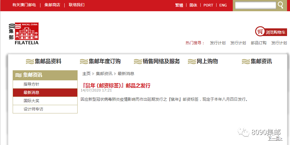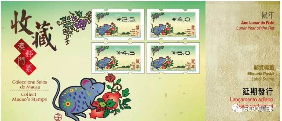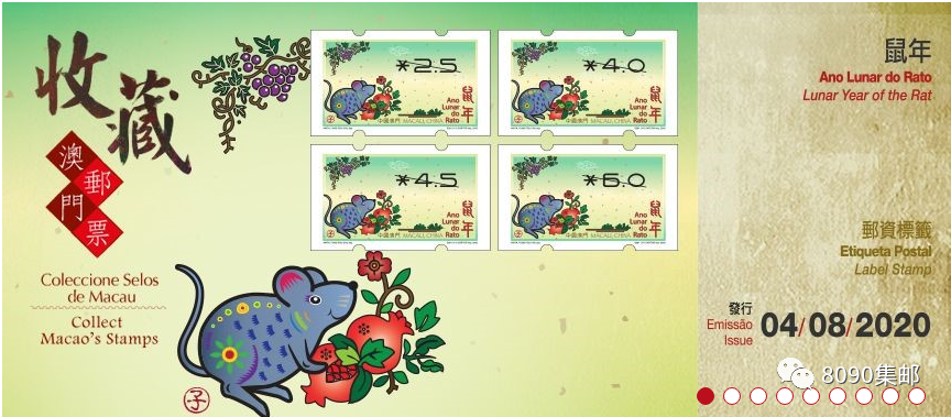 澳门“鼠年标签”8月4日恢复发行 日期:2020-07-18 来源:集邮之家 原定于2020年2月初发行启用“鼠年”邮资标签,因为突发的疫情,暂缓发行。随着疫情得到控制,关于这套“邮资标签”的消息,也传来了。 中国澳门原定于2月3日发行启用“鼠年”邮资标签,因为突发的新冠疫情,这套邮资标签被临时喊停。 随着疫情得到控制,这套邮资标签也将在8月4日恢复发行:
