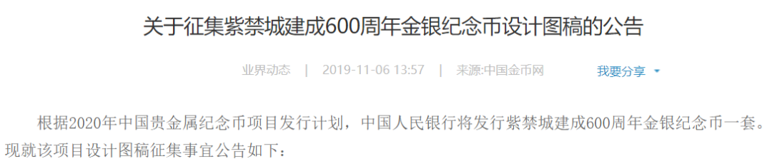 据悉,7月20日左右发布公告,8月3日故宫纪念币正式发行!